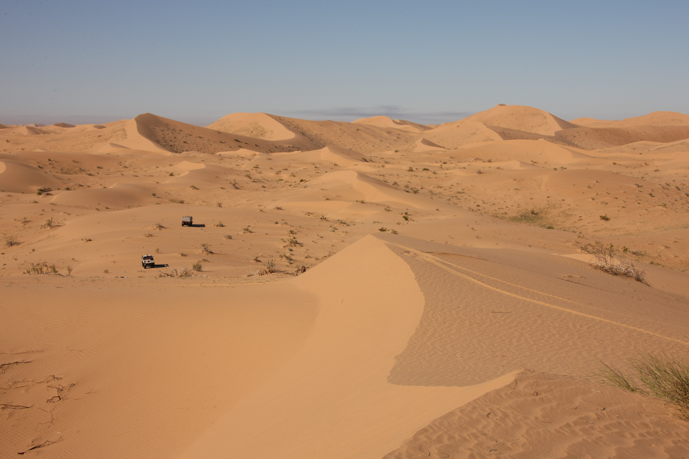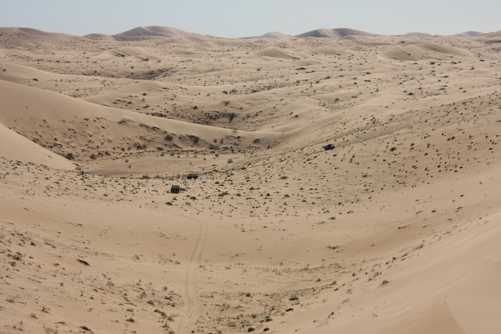 The objective of the day was to get from our current camp to another camp further south, closer to El Gulfo and deeper in the dunes. This would prove to be our most difficult day. Part of the team got into a "death bowl" and were unable to exit without a very long winching exercise (over 400 feet!). Happily, being the paranoid person I am, I did not go into the bowl and was therefore able to assist in the winching, speeding recovery of the team. Also, we would prove the mettle of the G-wagon.