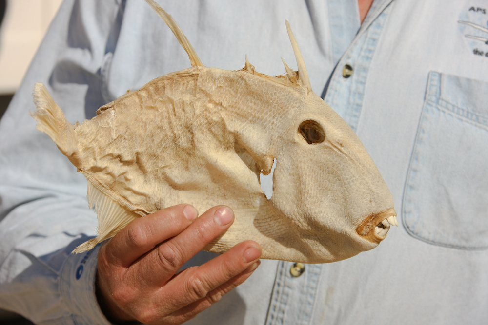 We found a hillbilly fish, AKA "Jedfish". But wait, it really cannot be a Jedfish because it has all it's front teeth. In reality, this is a trigger fish.