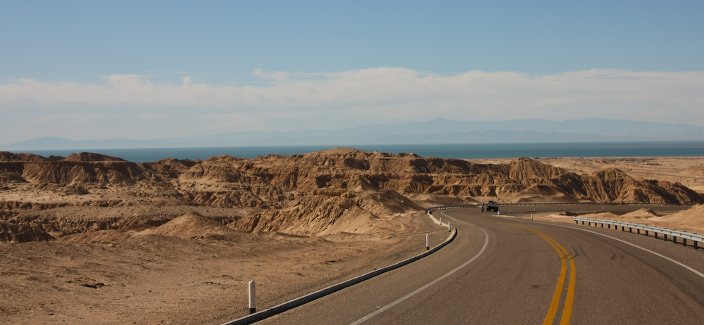 The new road that goes from Puerto Penasco to El Golfo is fully completed. Here, we took a short portion of the highway into El Golfo. Visible in the distance is the Sea of Cortez and Picacho del Diablo.