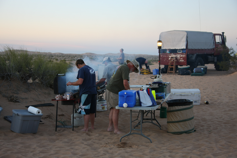 We had a great dinner after an uneventful trip across the southern dunes. Mark and Russ cooked some great asado and we had a nice camp fire illuminated by the nearly-full moon.