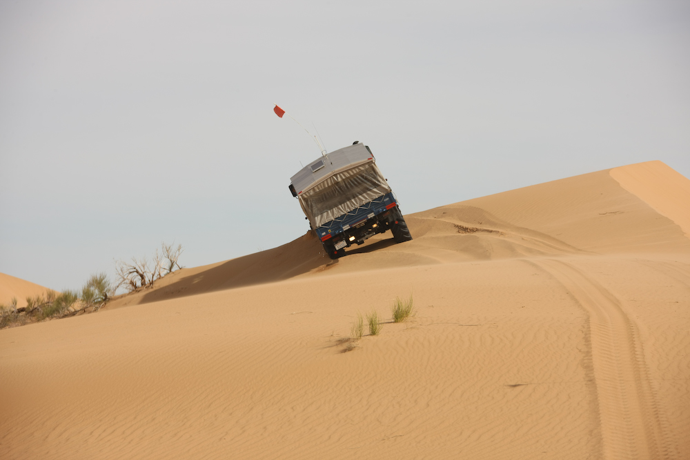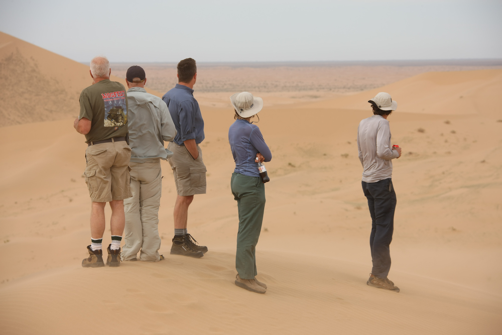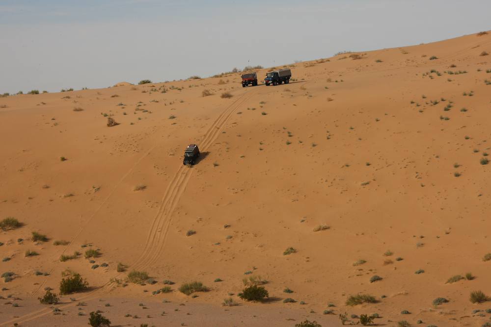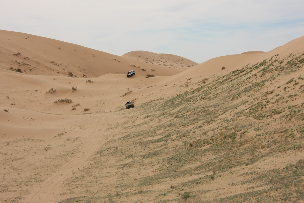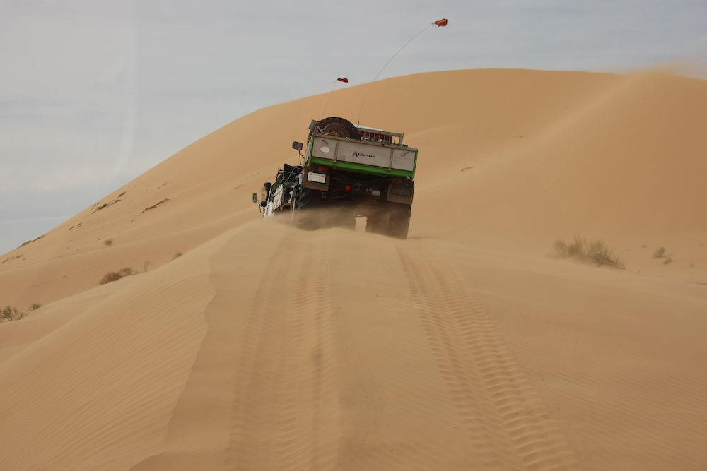 The wind was starting to increase resulting in lots of blowing sand. Passing next to a dune crest resulted in a sand shower.