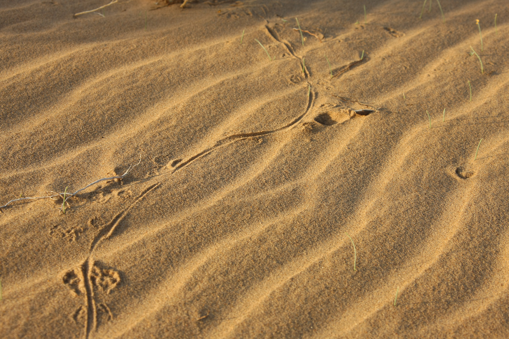 In the Altar, the sand tells the story. Above are wind blown ripples in the sand, scarcely marred by any disturbance.
