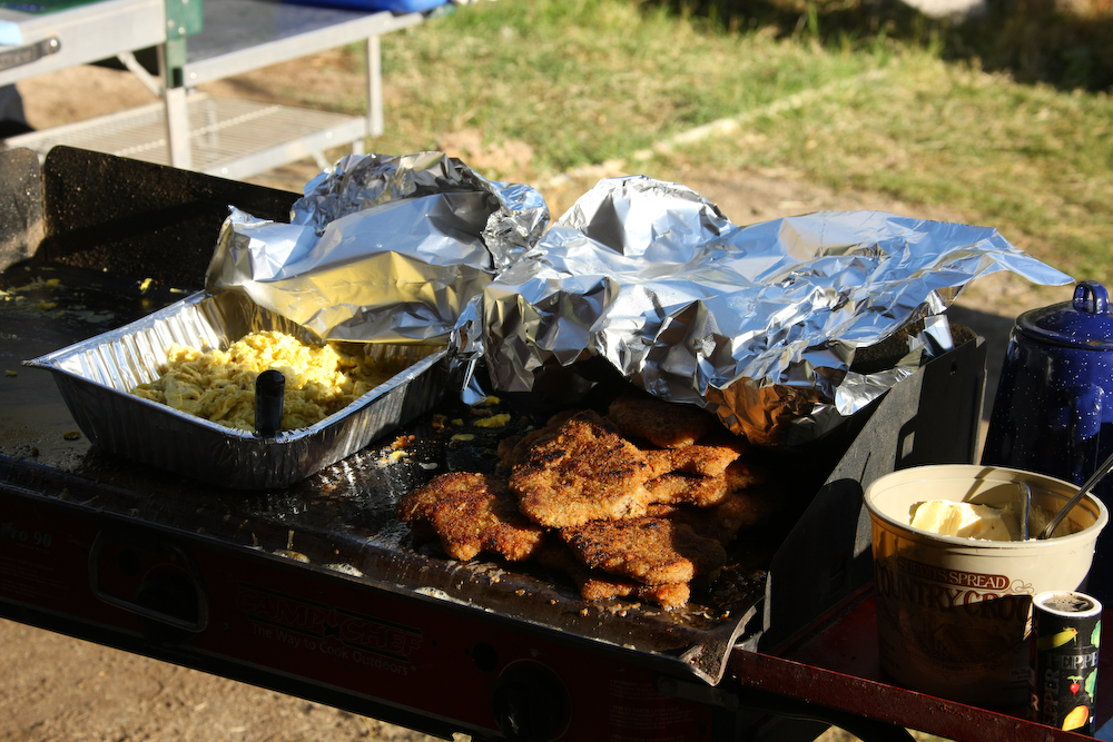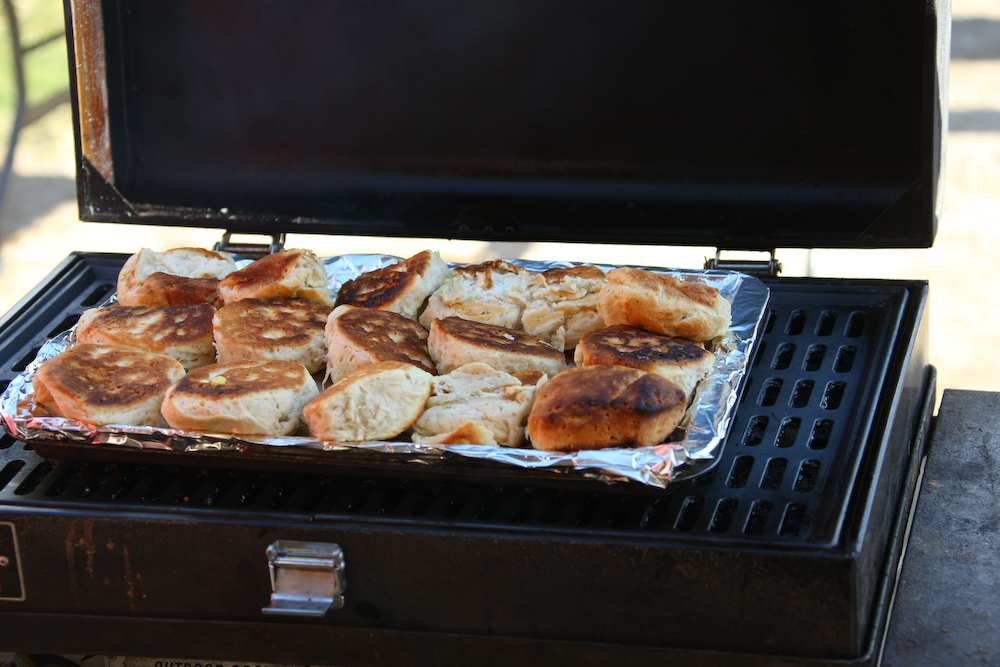 Biscuits baked on the grill. We had to turn them once, but it worked great.