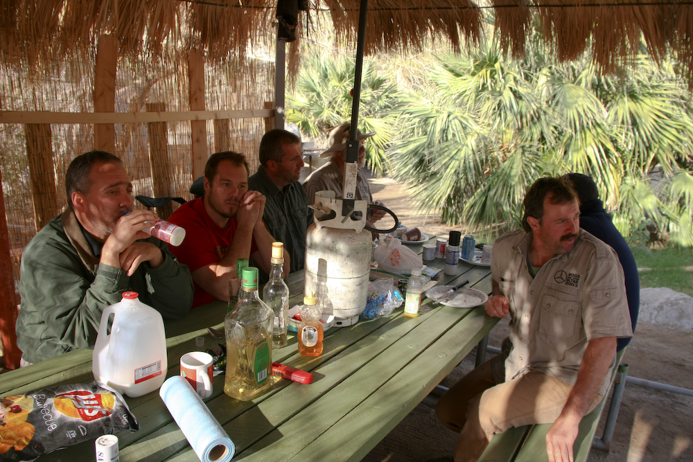 The post-breakfast stupor. Note the tequila bottles on the table.