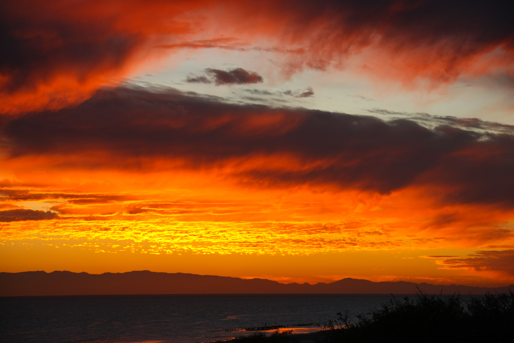 Sunset over the Sea of Cortez illuminates mountains in Baja.