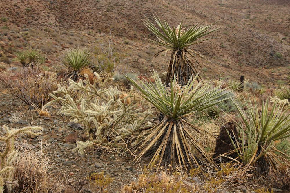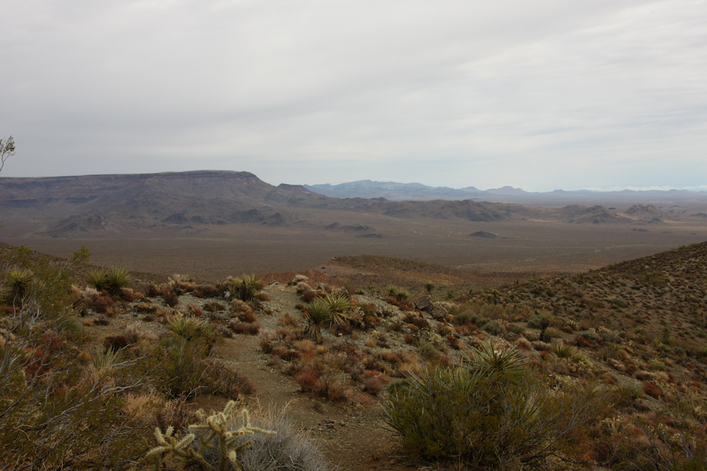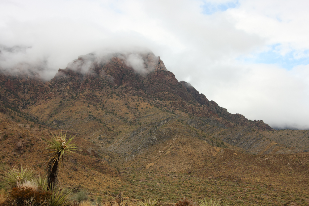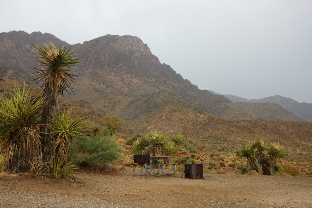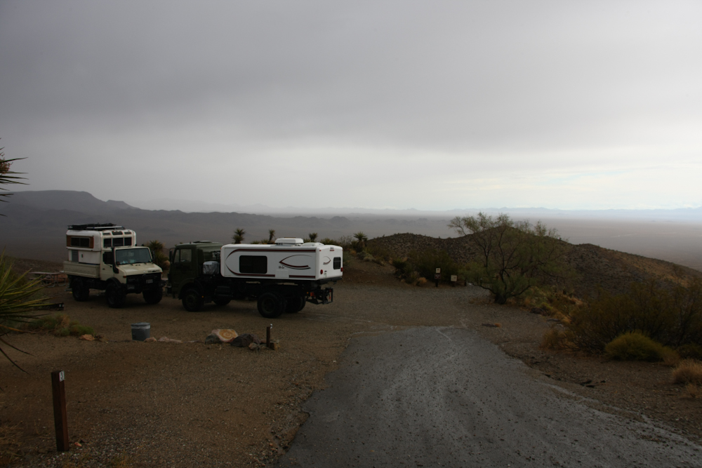 We spent the night in Flagstaff and it was cold and rainy.  Next morning, we continued west on I-40 to the Providence Mountains in the Mojave desert.  We spent the night at the Mitchell Caverns campground hoping to take the cave tour.  But, as fate would have it, the tour was canceled.  As we arrived, the weather started to close around our position.