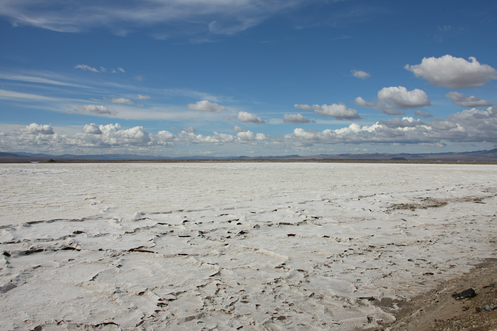 Along the way, we passed Amboy, CA which is next to a large dry lake.  The surface of the lake is coated with a crust of calcium chloride and sodium chloride which are both mined.