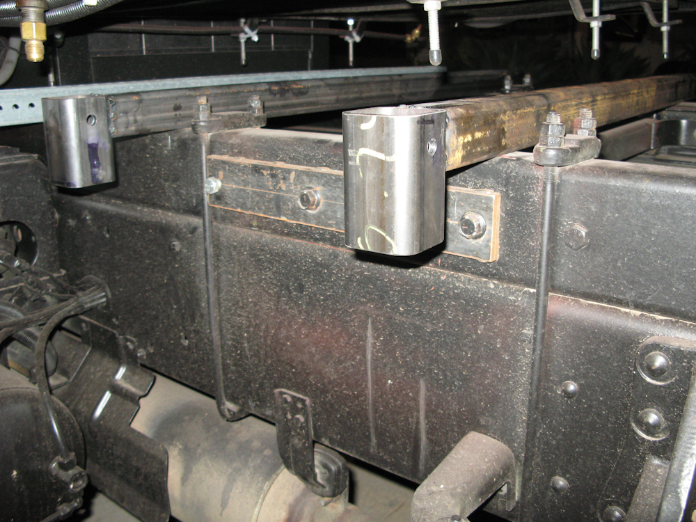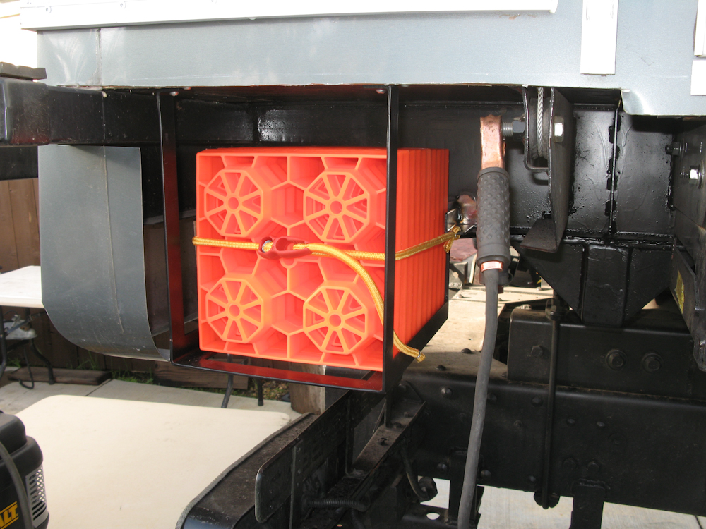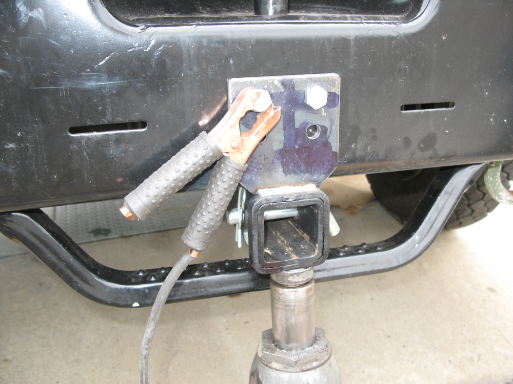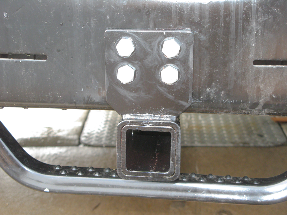 The front trailer hitch needed to be beefed-up, so a 4"x4" plate was added to spread the load over the front face of the bumper.