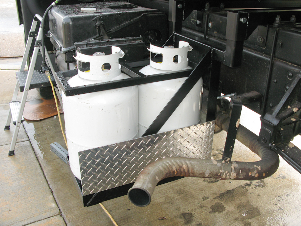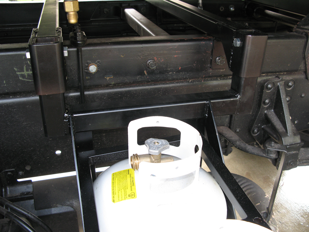 With propane bottles and the top, the mounting geometry becomes clearer.  The asymmetry is due to required clearance from existing components on the 1017.