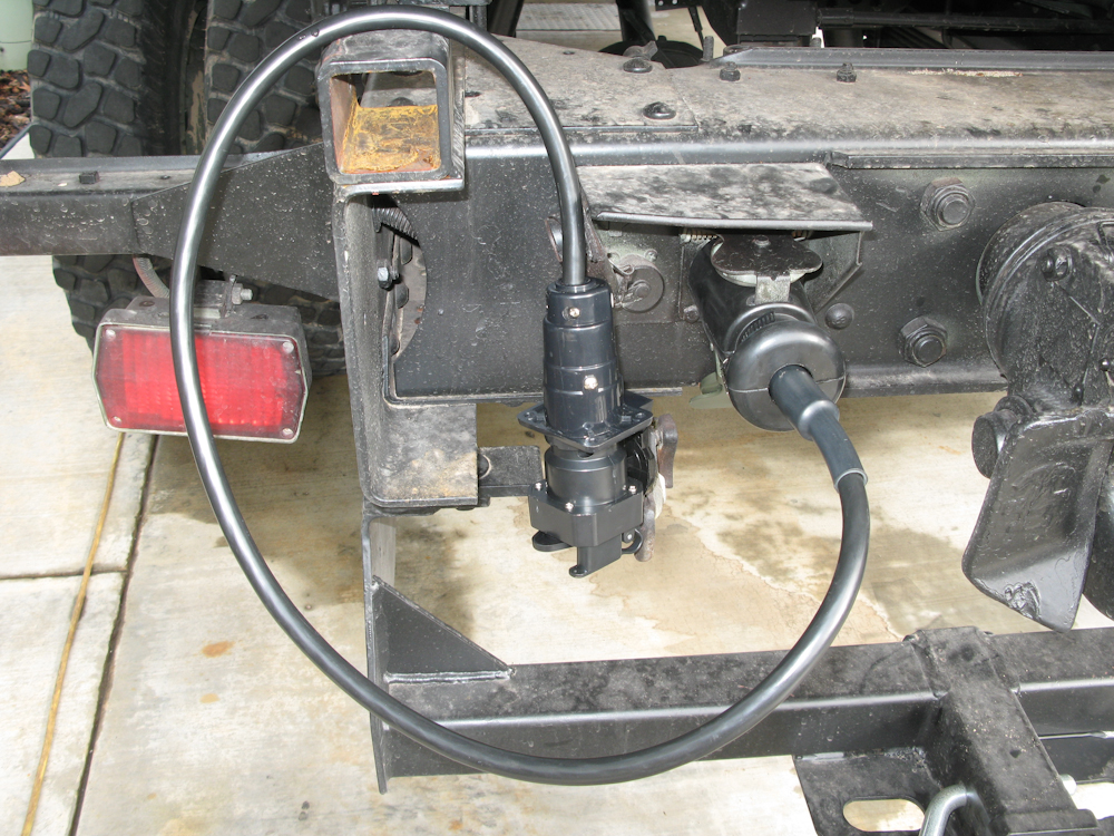 Amazingly, online I found an adapter that maps a 24-pin NATO trailer hitch to a 7-blade RV connector.  At NAPA, I found an adapter that maps 7-blade RV to both 6-pin and 4-pin trailer connectors.  I will, however, have to change the lighting on the trailer to LEDs that can tolerate the 24 volts that the 1017 uses.