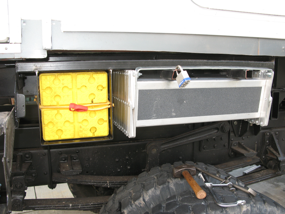 The leveling block frames were welded to the trailer and an appropriate shock-cord restraint was made.