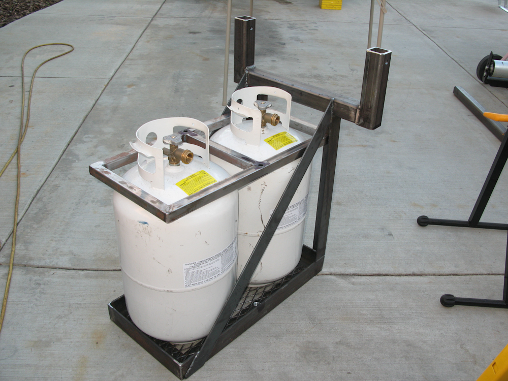 We mounted the saw on some steel saw horses and got to work cutting some 2x2x1/4" square tubing to be used in the propane mounting rack.  The saw cut the thick wall tubing without any issues, albeit at a slow rate.