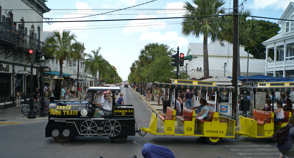 Duval street has everything a tourist needs including the Conch Train to carry you around town.