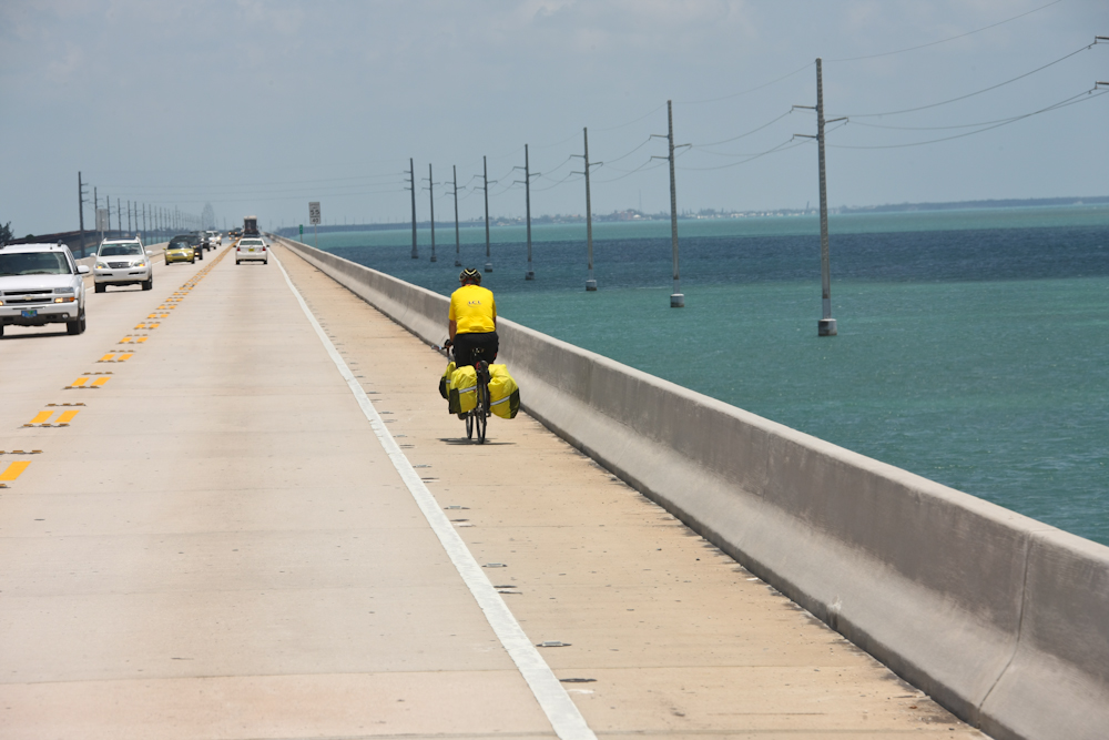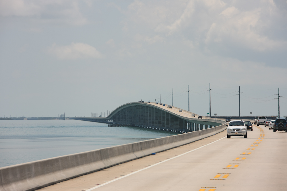 Key West, you must cross the Seven Mile Bridge.