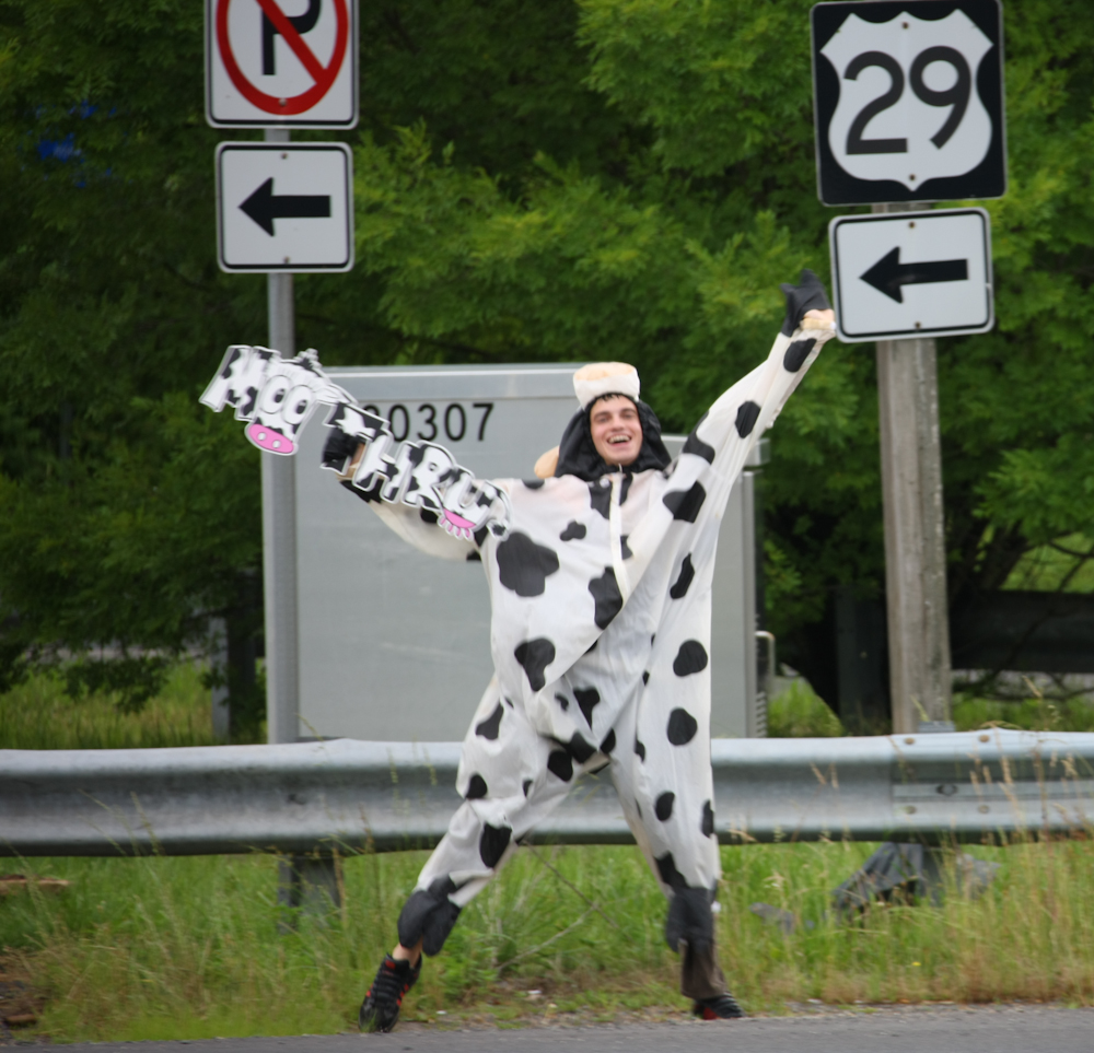 guy in a cow suit saw the mog and went ape. Or perhaps he went