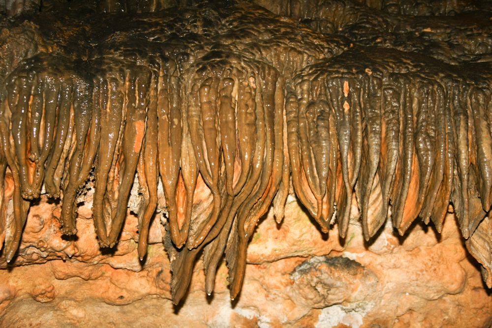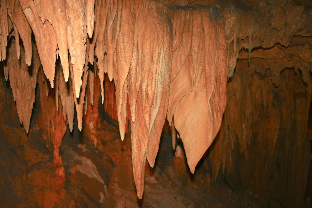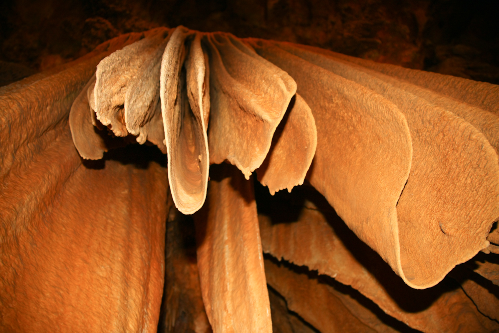 A number of sections of the cave had well developed drapery. Later, I shot one from the bottom looking up and the thinness of the rock is amazing.
