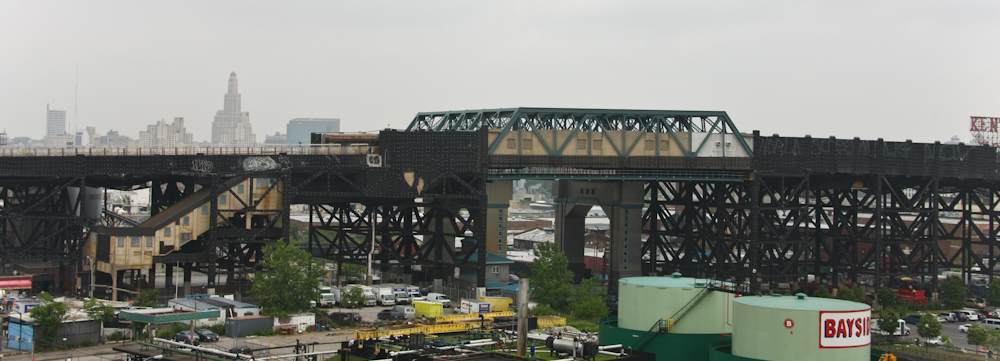 the elevated highway, we could see the Manhattan skyline.