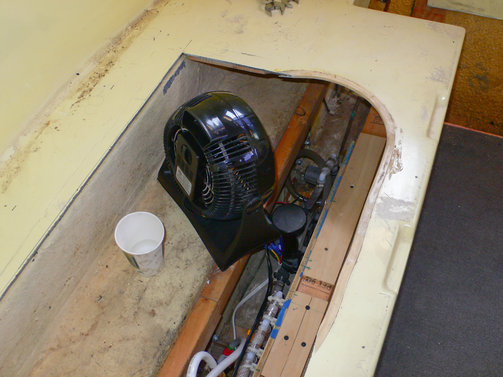 I had to use a fan to help dry out the area in the plumbing hold to prevent mildew and generally musty smells.