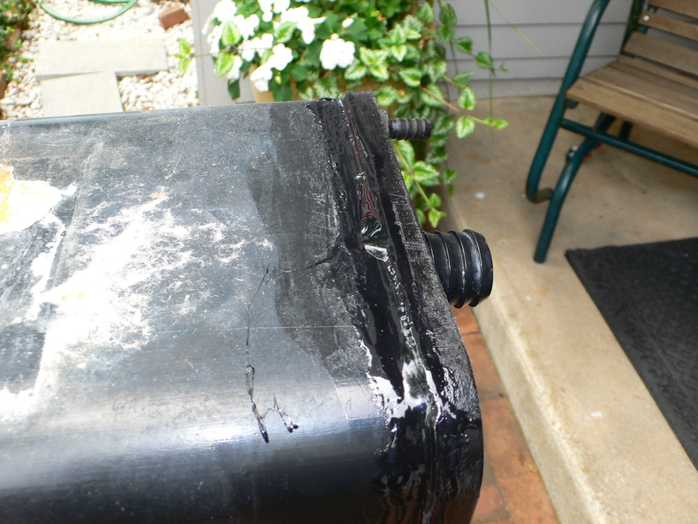 Mike attempted a repair of the existing tank with ABS glue. We coated all the seams and then did a fill test to try to identify any remaining leaks. The test showed no leaking, but as it turned out, it was not a sufficient test.