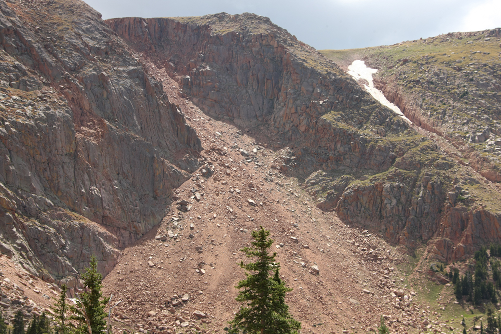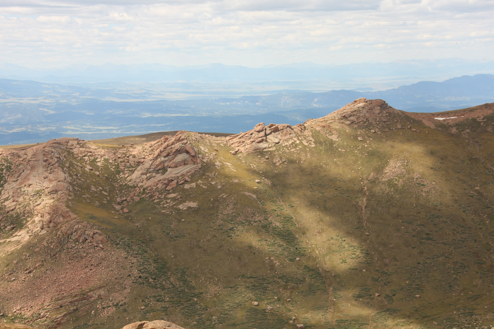 the peak, the terrain changes to alpine tundra with minimal vegetation.