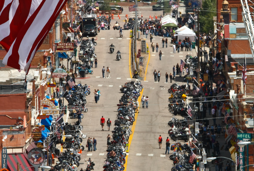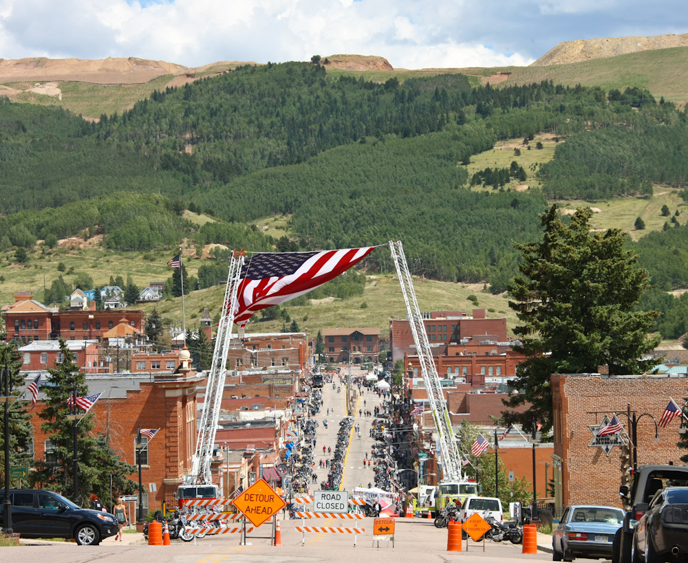 huge biker's rally at Cripple Creek with thousands of bikes in