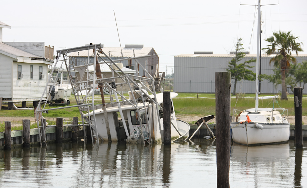 damaged by the storms. We spotted this boat that sank in it's