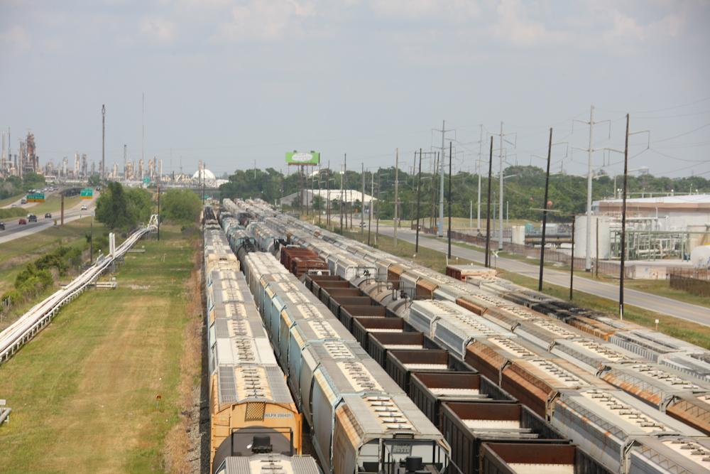 The Lake Charles area is heavily industrialized with a number of refineries and chemical factories including a sulfur plant. The rail yard adjacent to the plant was filled with cars awaiting product.