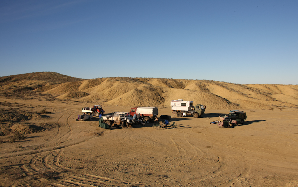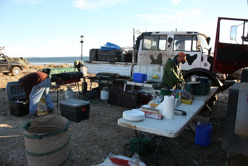 We positioned the trucks to act as a wind break to make cooking easier (or possible depending on your perspective).
