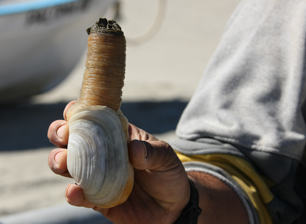 We went further south along the coast and came upon a fellow that had caught a geoduck clam. I had to look this one up online and was amazed to find that some of these can weigh up to 15 pounds and have snouts of 6 feet in length. These are filter-feeders and eat plankton sucked in through the snout. Geoducks (pronounced "gooey duck") can live for 150 years and females can produce up to 5 BILLION eggs during a lifespan.