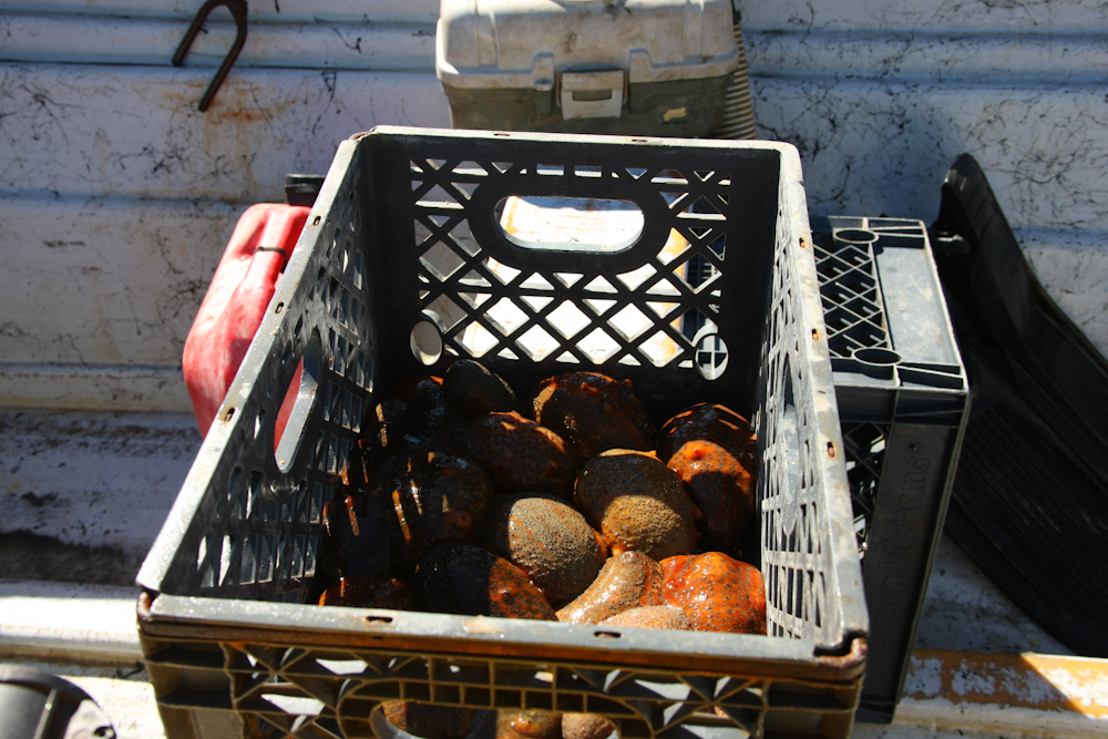 The fishermen also caught Sea Cucumbers in addition to the geoduck. I had to look this one up as well and all I can say is that a Wikipedia search is in order for the readers. This odd-looking creature has some amazing properties that are too numerous to list here. I must say that I was fascinated to learn that the cucumbers migrate in herds!