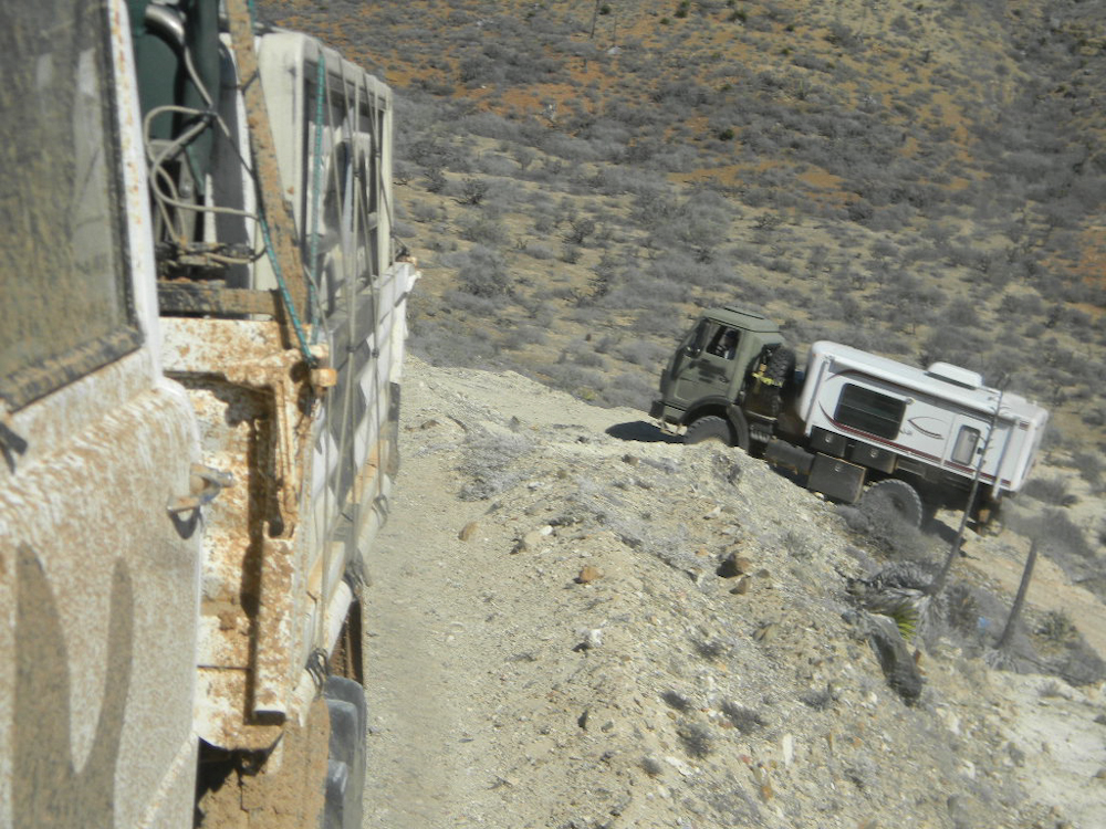 The down-slope was just as steep and I am guessing that it would be impassable when wet. The 1017 has an exhaust brake and it works well when the truck is in one of the lower gears.