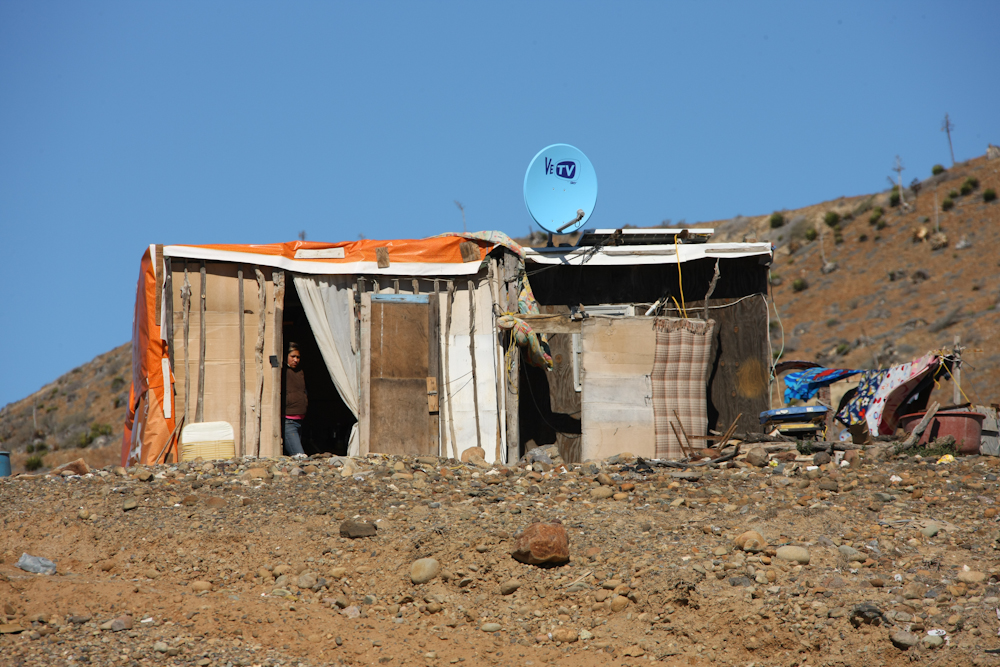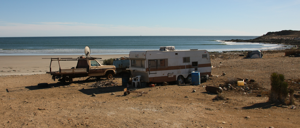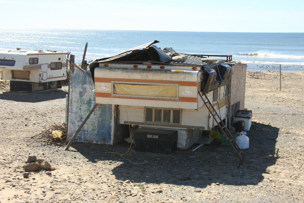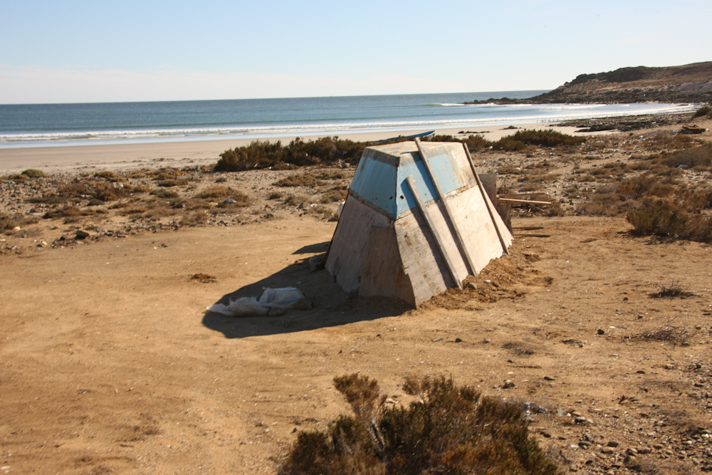 This was one of the most basic dwellings that we encountered: a used panga turned upside down with plywood sheets as walls.