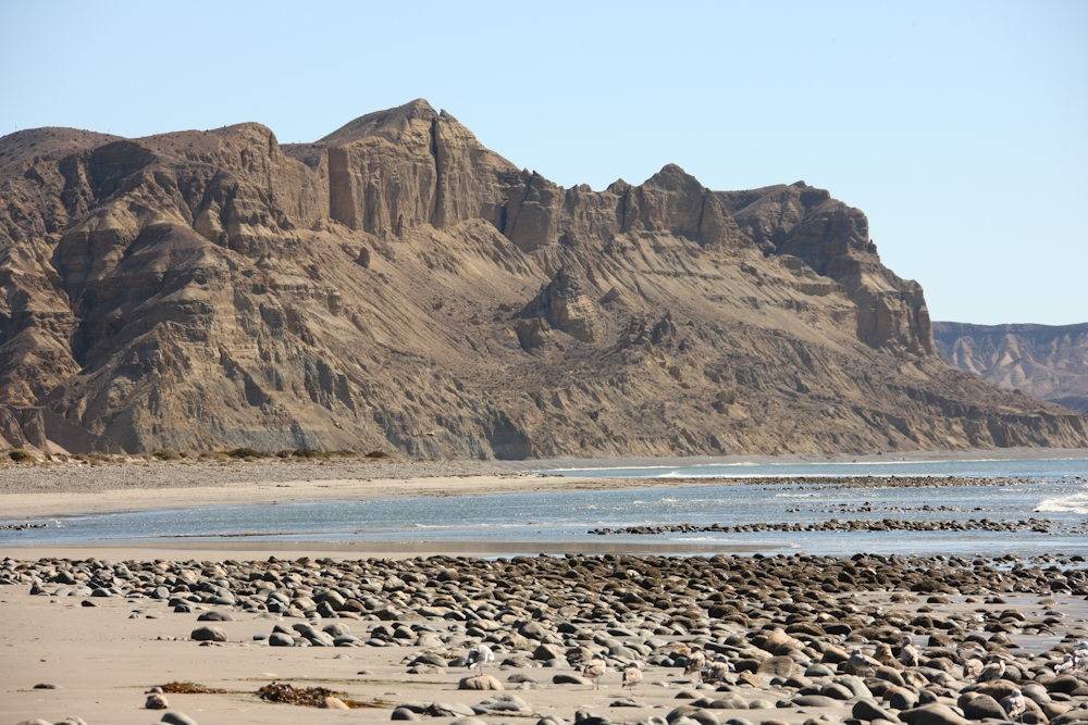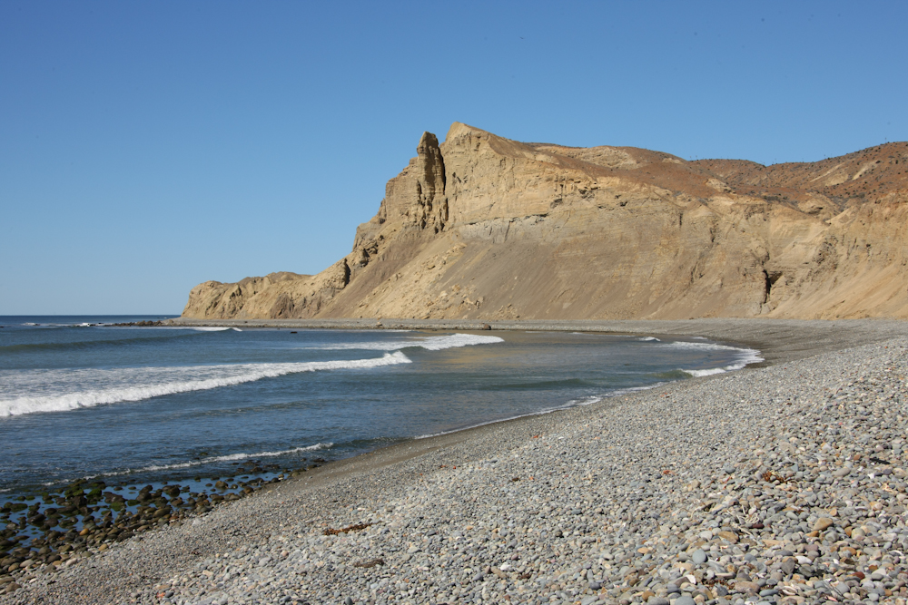 This section of beach had a very steep cobblestone berm. Some of these cobbles are the size of loaves of bread, a loud testament to the power of waves. The berm above is perhaps 30 feet high.