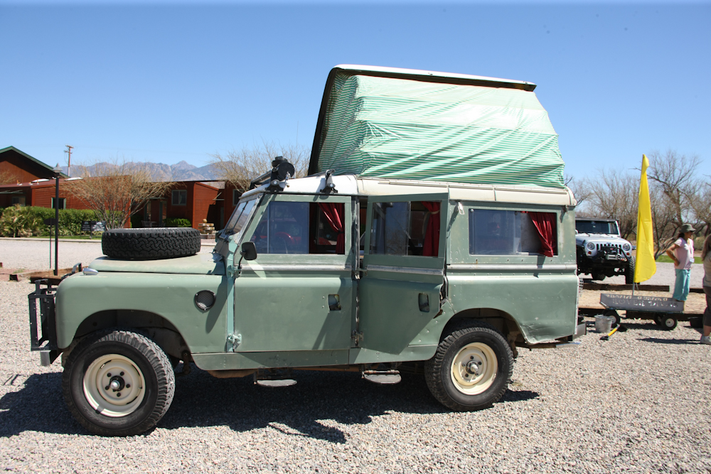 older, cab-forward Land Rover. The area at the right of the photo