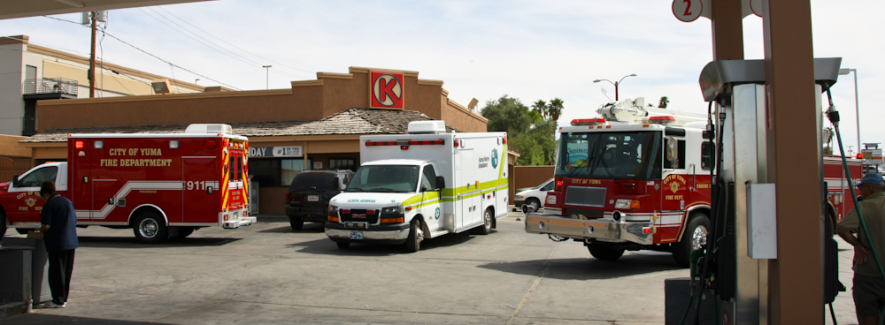 fuel stop in Yuma, we were surrounded by emergency vehicles.