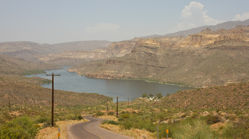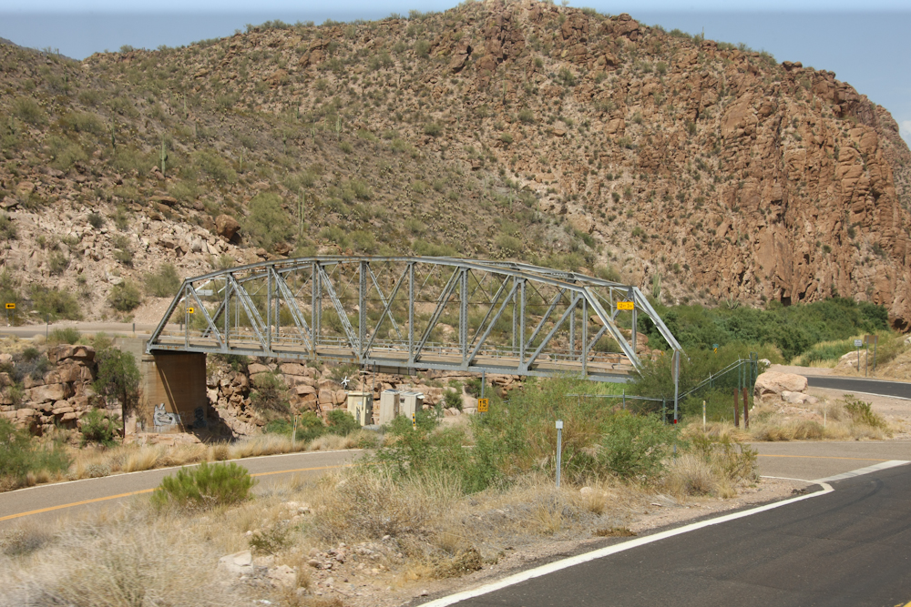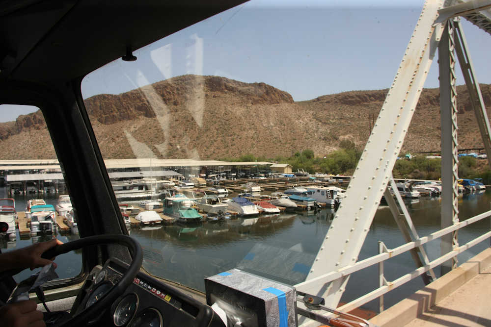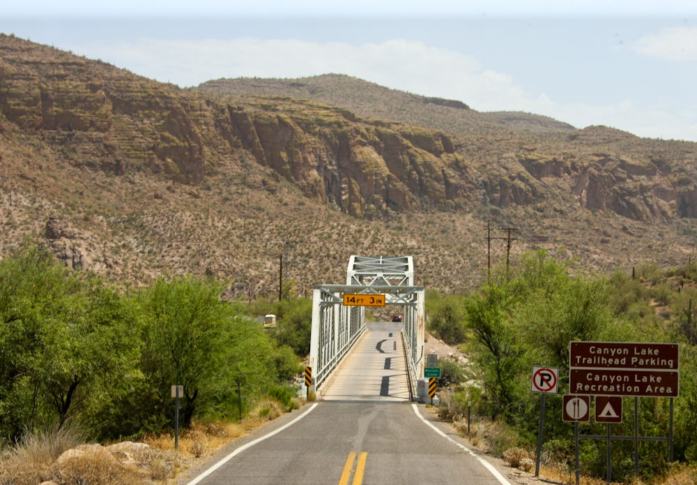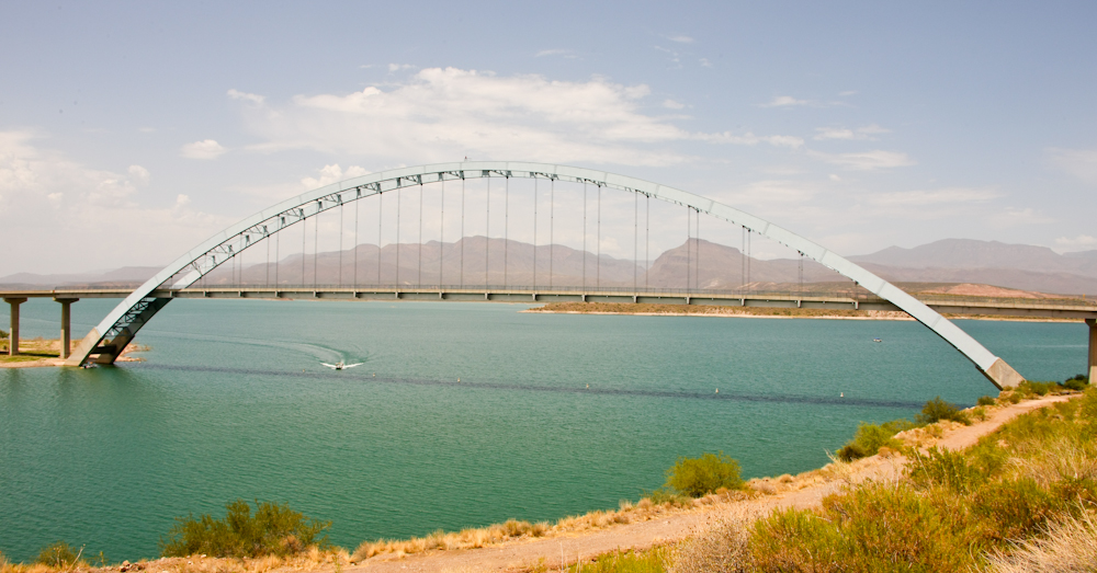 behind the dam, Roosevelt Lake, is this nice bridge.