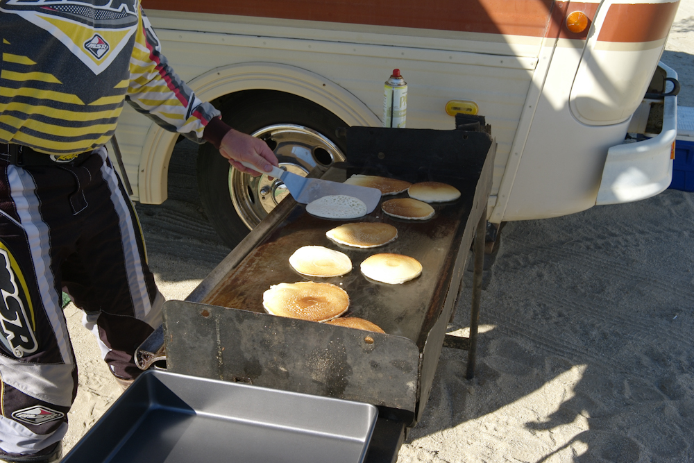 everyone. Above Kai works the griddle with his famous pancakes.