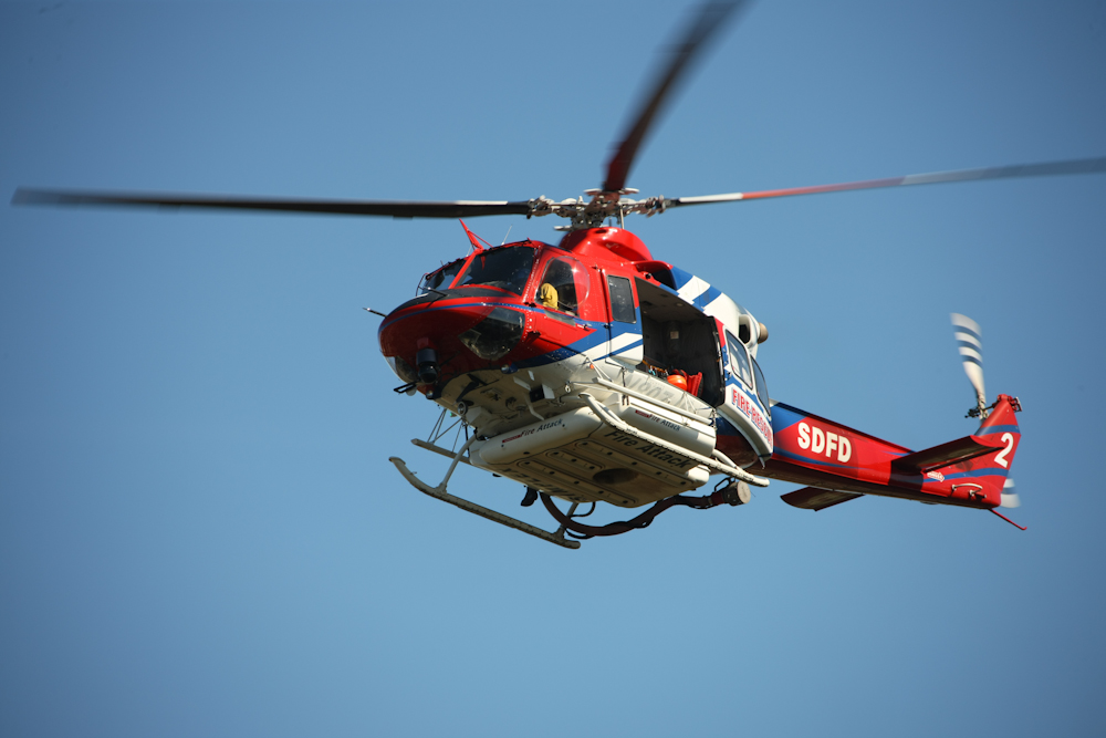 We sprinted outside to see the fire department helicopter.
