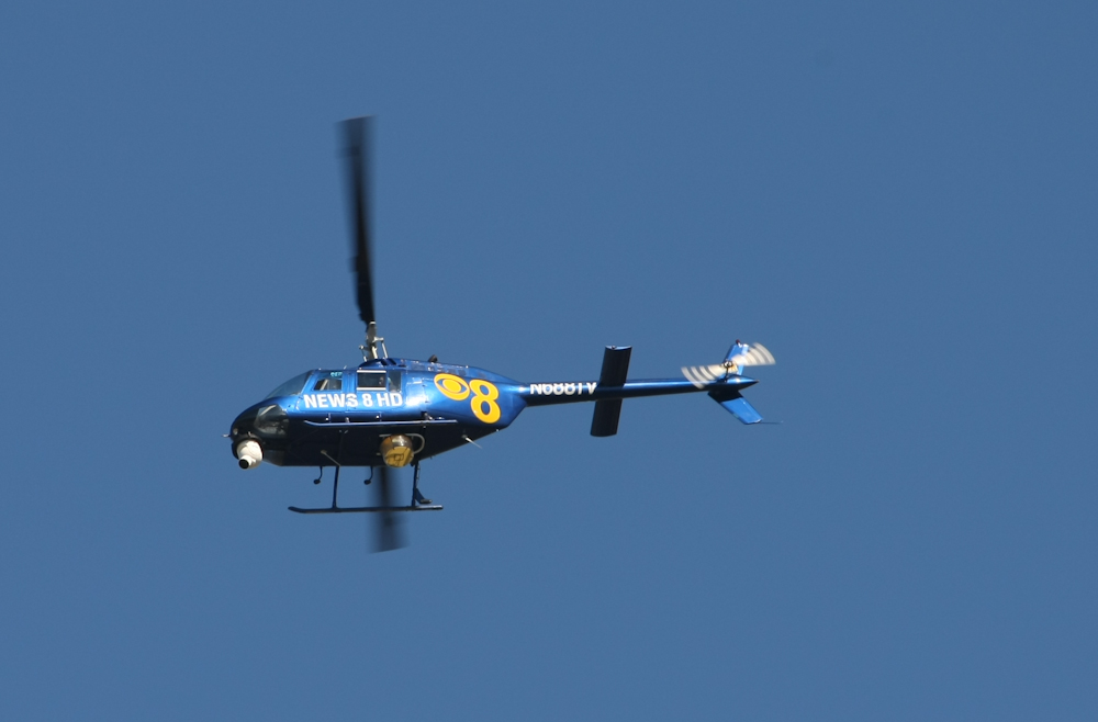 helicopters. The newscaster stated that the woman was on the