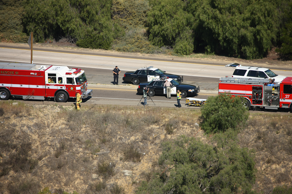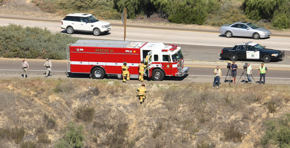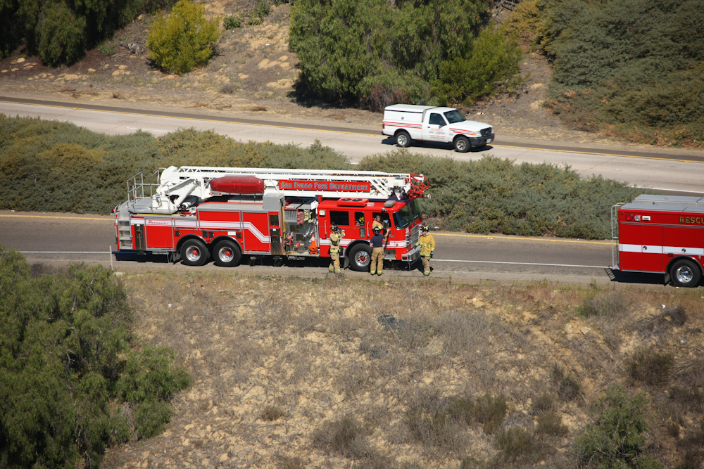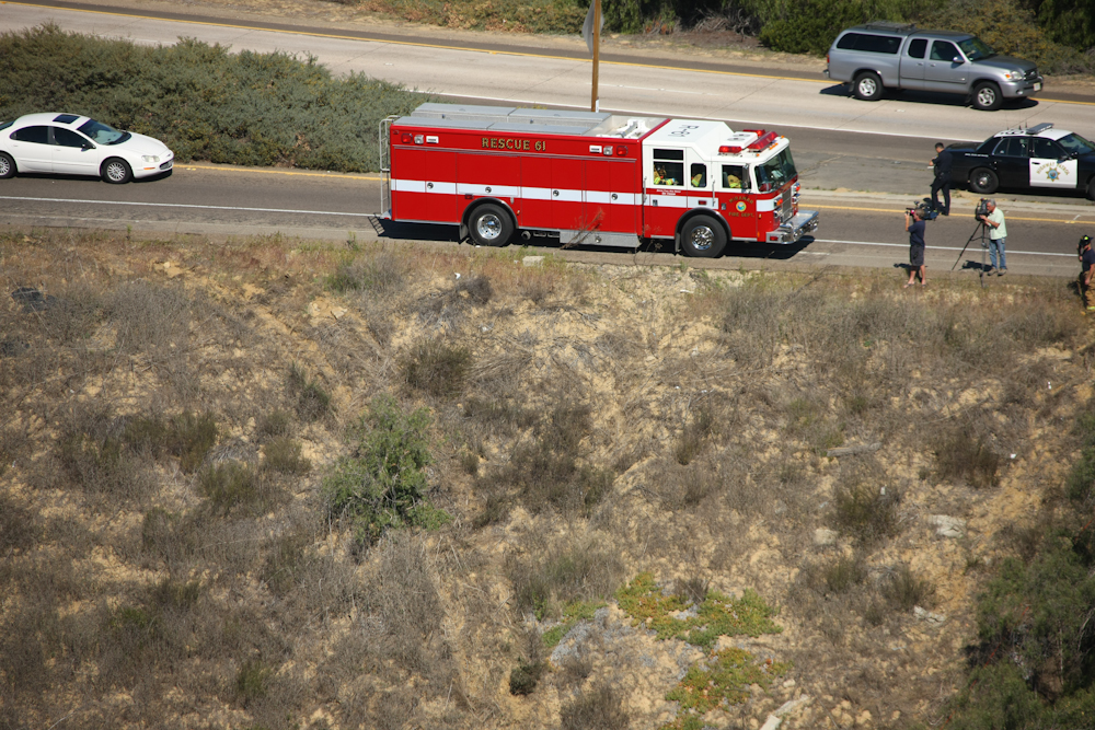 ladder truck was followed by another CHP cruiser.
