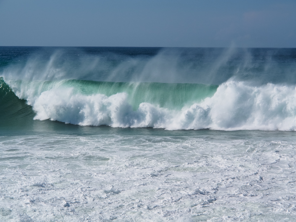 Lighthouse). The shape of the shore makes the waves at