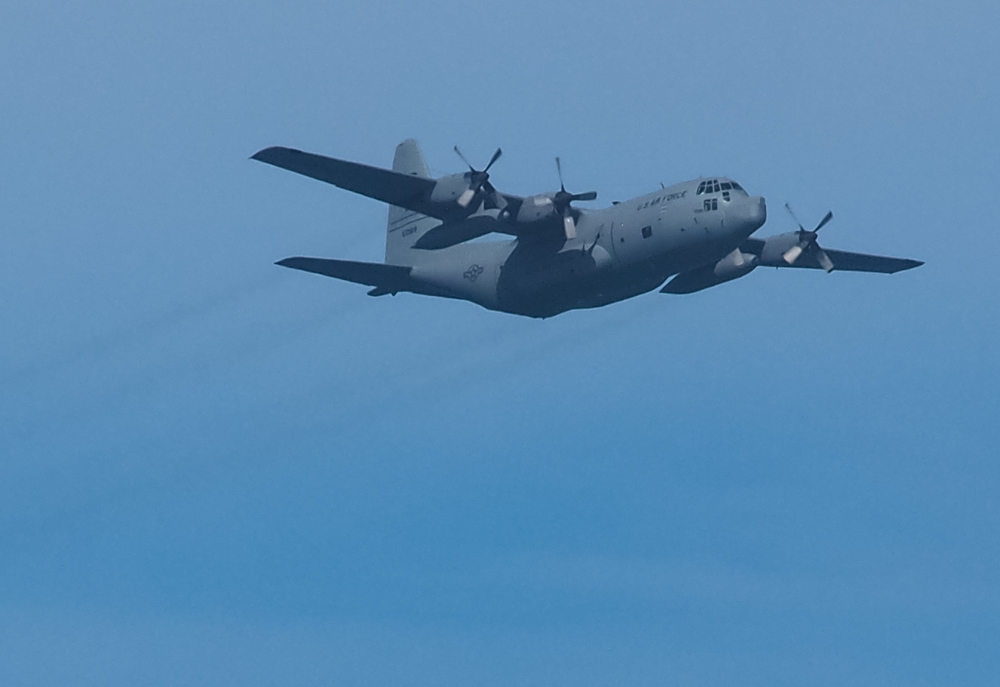 were taking photos and admiring the waves, this C-130 banked a