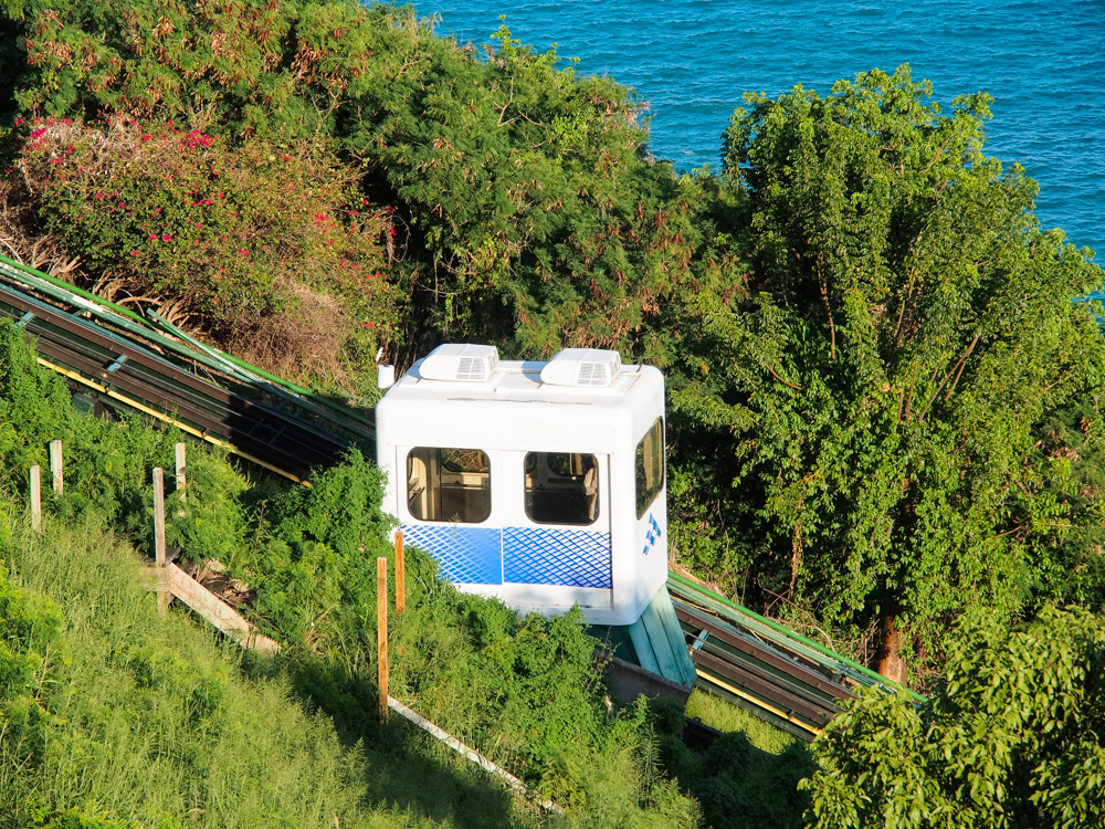 facility is on the hill, and there is a funicular (tram) that