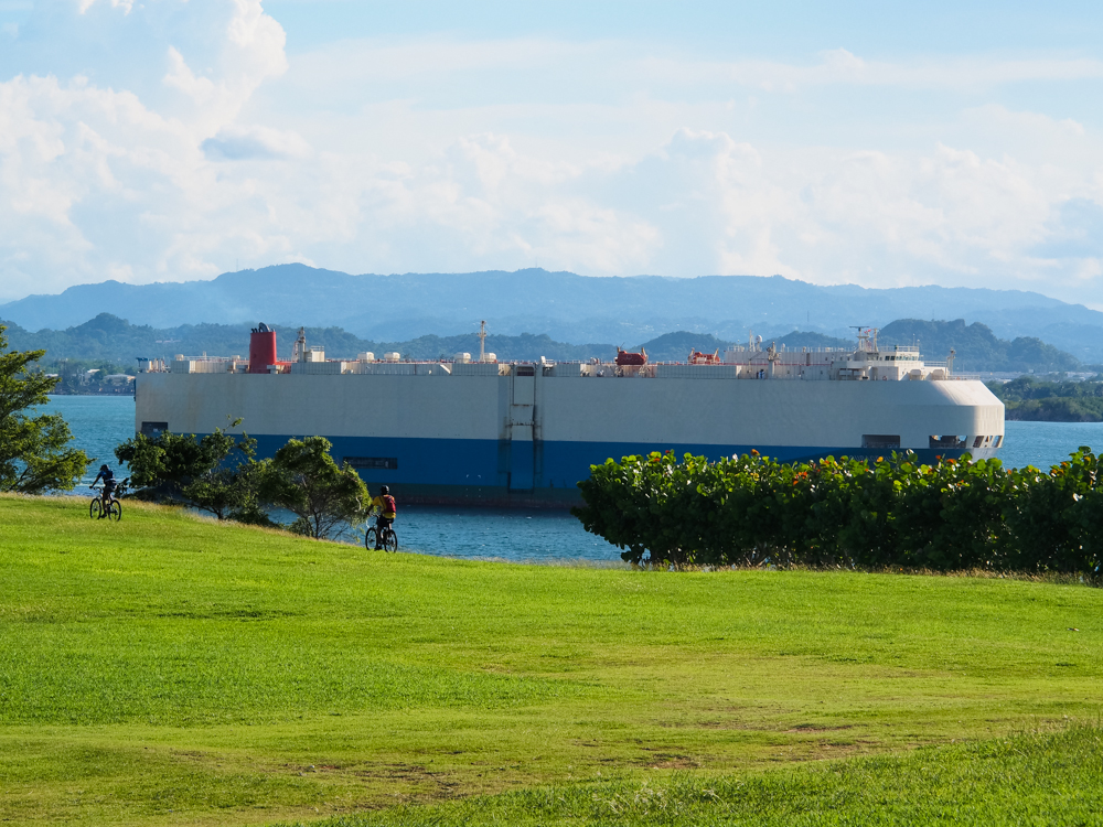 When we finished at El Morro we headed back to our hotel. From the high ground of El Morro we saw this car carrier on its way out of San Juan harbor.
