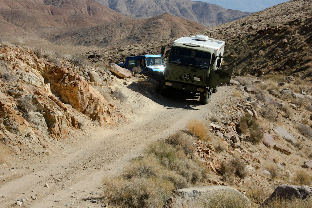 Mengel Pass was more difficult than I remembered. Thor did well, but it did require careful wheel placement to pass the obstacles. We did a bit of damage, but nothing of substance. Next: Goler Canyon and on to Stovepipe Wells.| Previous Adventure | ||