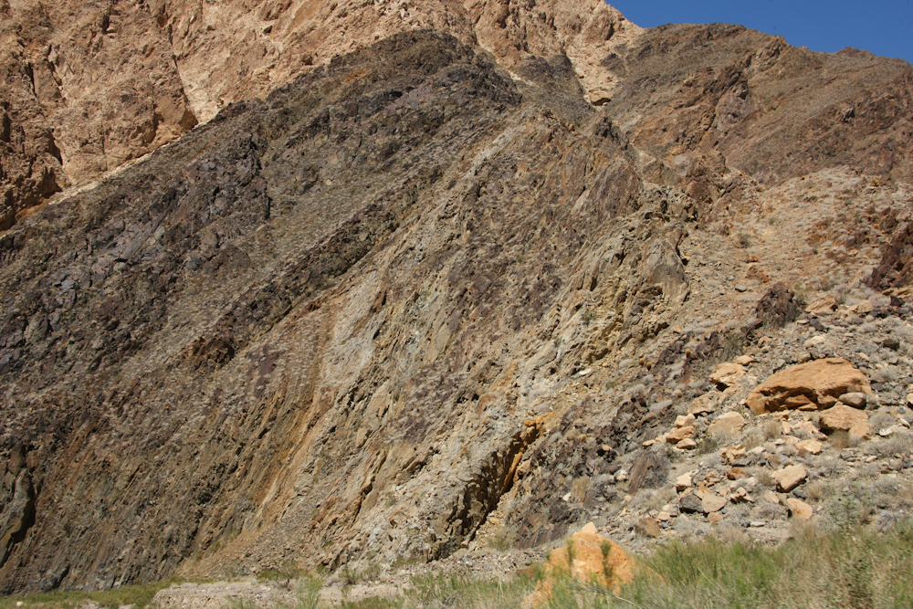 apparent in the rocks exposed in Goler Canyon. Note the