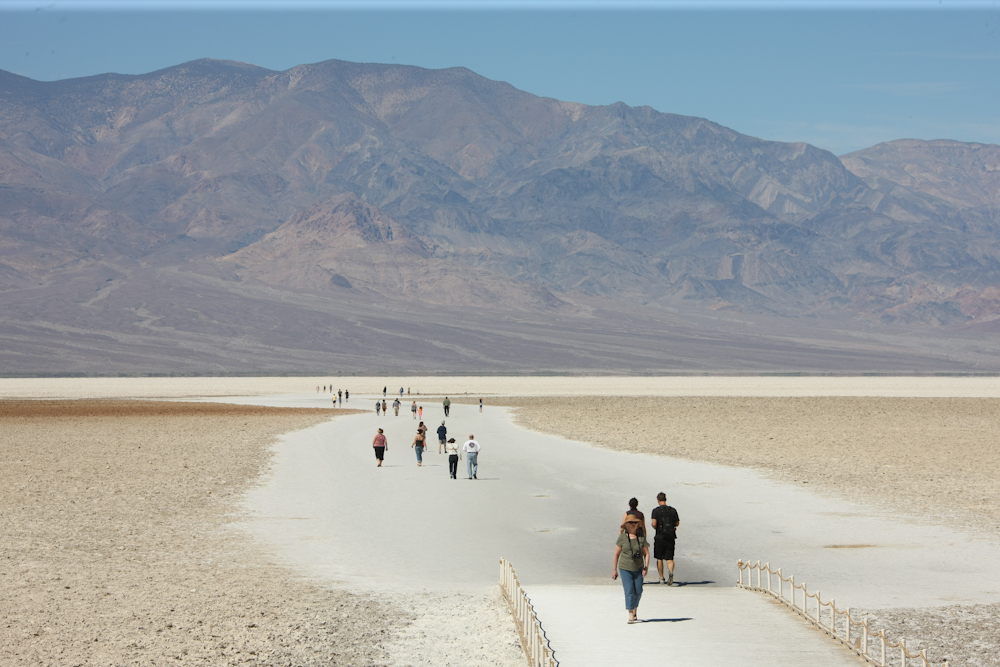 From the lowest to the highest in the area: 11,000 foot Telescope Peak in the Panamint Range is visible on the far horizon.