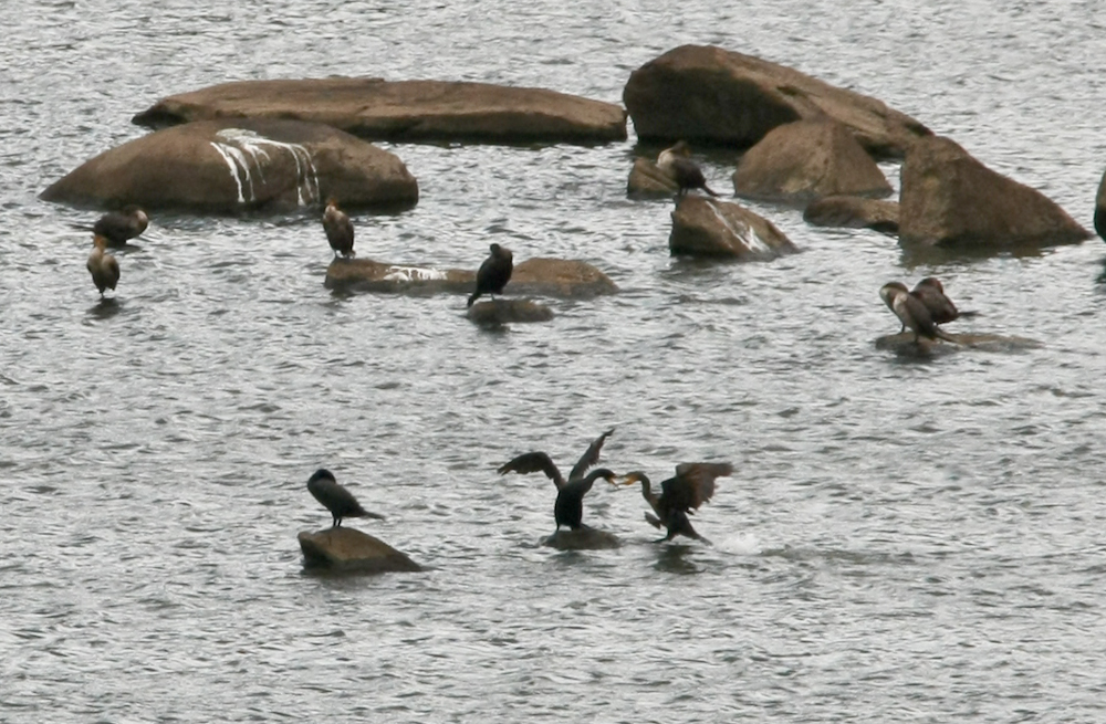 the rocks in the tailrace pond, I spotted these birds fighting.