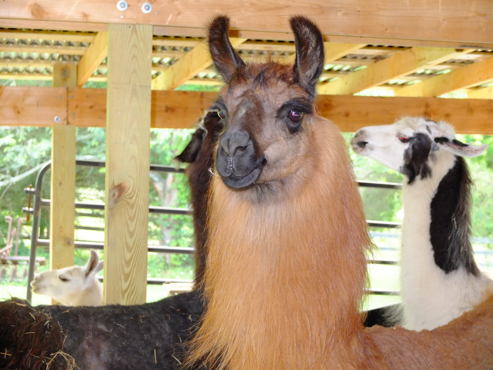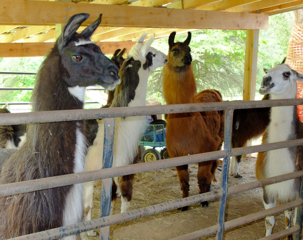 I walked near the fence to the corral, the llamas were right there