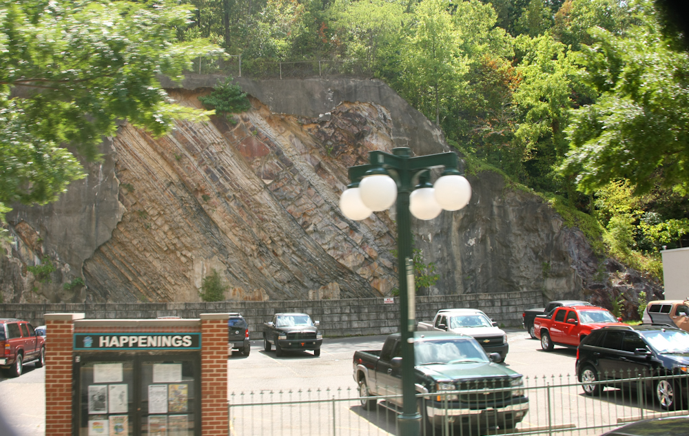 the hotel, the shot-crete coating on the cliffs had fallen off